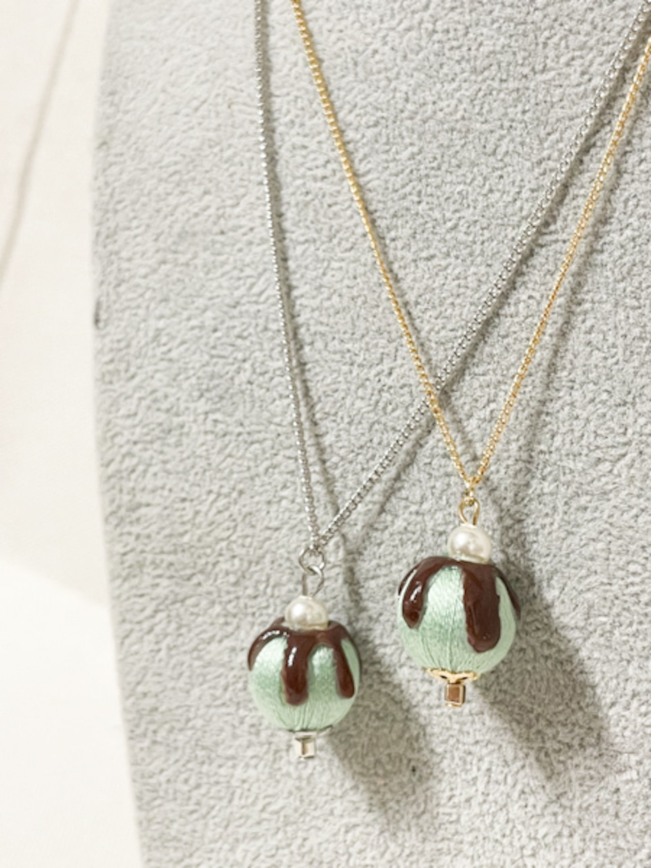 チョコミントアイスをイメージした爽やかな色合いが、首元に軽やさをもたらします。チョコが垂れたようなデザインで思わず「美味しそう」となります。