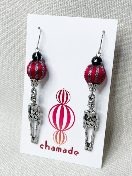骸骨をイメージした巻玉が、耳元に少し不気味な魅力を与えます。